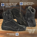 GORE-TEX performance footwear is durably waterproof and breathable for all seasons. This lightweight uniform boot is CSA approved with composite toe and flexible fabric plate, non metallic ASTM F2413-11 Rated Composite Toe for protection on the job. Featuring an inside zip for ease of getting on and off and slip resistant outsole for traction.