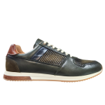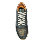 SLOW is a sneaker that combines sports and casual styles through a unique silhouette. Leather uppers with technical fabric and contrasting panels on the sides and heel. Rubber sole with leather detailing.