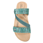 Step into unparalleled comfort with the Biza Women's Liv sandals in a vibrant teal hue. These sandals are designed to keep you moving with ease, thanks to their shock-absorbing rubber outsole and plush microfiber-lined memory foam insoles. The Liv sandals feature two fully adjustable Velcro straps adorned with chic ornament detailing, ensuring a perfect fit and a touch of elegance. Slip them on effortlessly for any casual outing, whether you're exploring new travel destinations or enjoying a leisurely walk. Ideal for spring and summer adventures, these sandals blend style with functionality, making them a must-have for your warm-weather wardrobe. Experience the perfect fusion of comfort and style with Biza Liv.