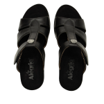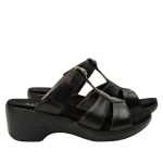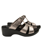 From the office to cocktails at eight, this tailored leather slide incorporates an adjustable hook-and-loop close strap and molded memory foam and cork footbed for all-day comfort. The sophistication continues with a featherweight wood look wedge outsole.