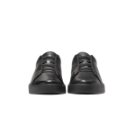 - Leather upper in Black; slip-on silhouette
